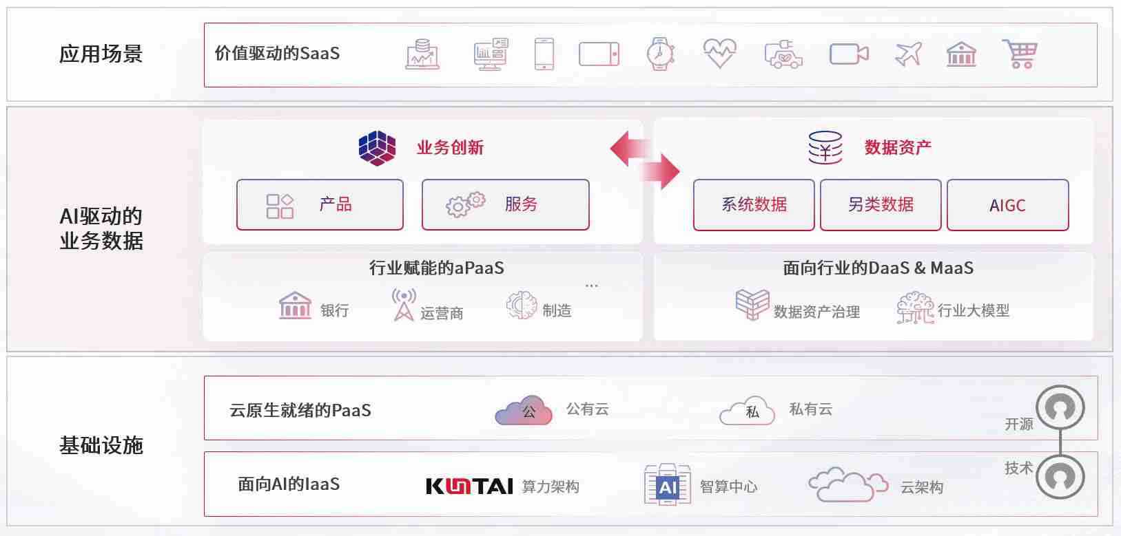数字时代,,,,围绕企业数字化转型的关键要素,,,bob波币钱包数码开创性的提出数云融合战略和技术体系框架,,,着力在云原生、、、数字原生、、、、AI原生和信创产业上架构产品和服务能力,,为处在不同数字化转型阶段的快消零售、、汽车、、、金融、、医疗、、、、政企、、、、教育、、、、运营商等行业客户提供泛在的敏捷IT能力和融合的数据驱动能力,,,,构建跨界融合创新的数字业务场景和新业务模式,,助力企业级客户建立面向未来的核心能力和竞争优势,,全面推动社会的数字化、、、智能化转型升级。。。。